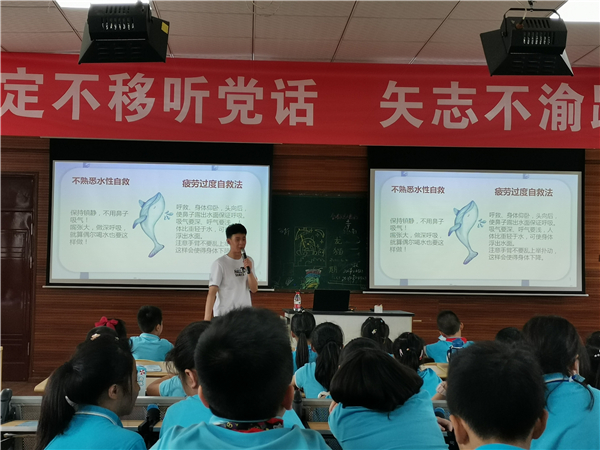 区少儿业余体校的游泳教练从游泳的好处与危险、游泳安全、游泳水域、水上安全知识宣传、水上救生技能传授、发生溺水怎么办、如何自我救助等几个方面对学生进行了一次全面的水上安全知识教育。水上安全知识及海洋知识问答环节让大家活跃起来,大家在讨论中互相学习。