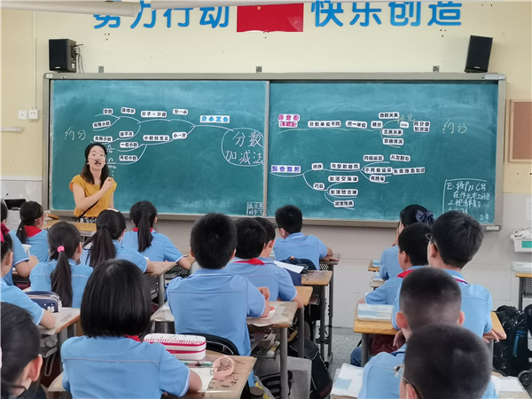 第二节课由苏枝枝老师执教五年级一班的《分数加减法整理与复习》。本节课参照学科项目式课程模式,在课前抛出驱动性问题,学生自主探索,完成前置任务。在本节课中,做到了学生为主导,进行有效的生生交流,课堂在讨论中生长。