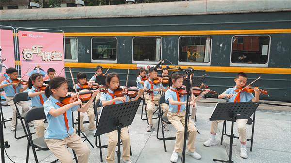 2021年6月10日下午,四川交响乐团附属小学在音乐公园举行了一场别具一格的弦乐艺术课堂。轻快活跃的音符,悦耳动听的旋律,仿佛让人踏着轻盈的舞步,在明媚阳光里徜徉。特别是《我和我的祖国》一曲,演绎出孩子与祖国共命运、心连心的壮志,更是用琴声表达出对祖国深深的祝福。