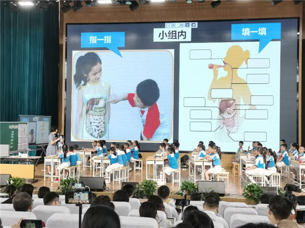 此外,还有涵盖科学课四大领域的8节同课异构现场课。生命科学领域:国红梅和赵猛祥老师执教《食物的消化》;地球宇宙科学领域:曾宝俊和罗堰丹执教《月相观察》;物质科学领域:曹庆明和黄春玉老师执教《热是怎样传递的》;工程与技术领域:徐杰和宾雨老师执教《像工程师那样》。让老师们清楚地看到不同的教师对同一教材内容的不同处理,不同的教学策略所产生的不同教学效果,以此达到了启发参会教师更多教学思考和领悟的效果。