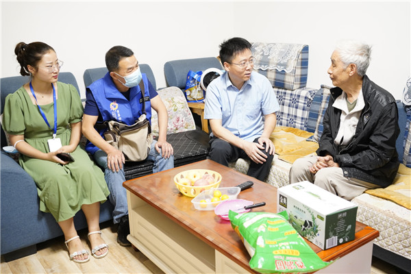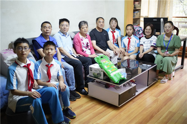 成都市泡桐树小学境界分校(以下简称:泡小境界)长期坚持走进社区,对社区军属进行“新春慰问”和“八一慰问”。2021年6月17日,泡小境界丁晓敏校长带领学校党员教师代表任媛圆、少先队员代表们和社区工作人员一起,给退伍老兵们带来了亲切的问候。