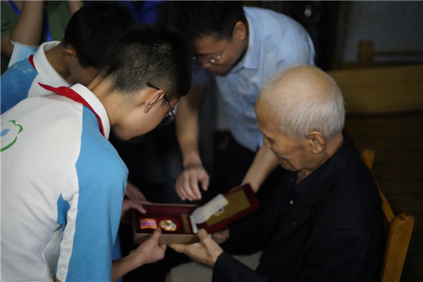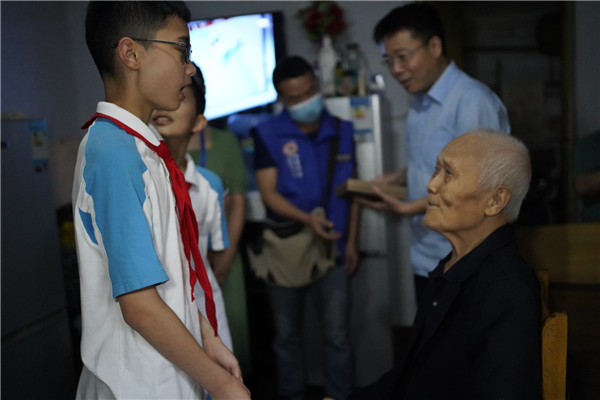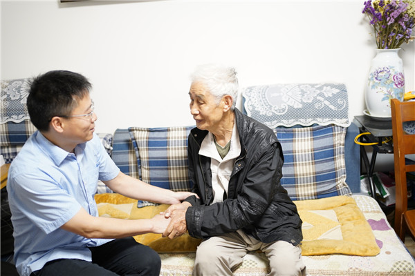 丁校长一行首先来到了青森小区张爷爷家,对张爷爷和老奶奶进行慰问。张爷爷当年参加了抗美援朝战疫,是最后一批撤离的中国人民志愿军。张爷爷讲着战场上的故事,英雄的事迹感染着在场每一个人。