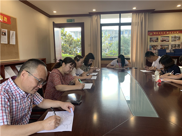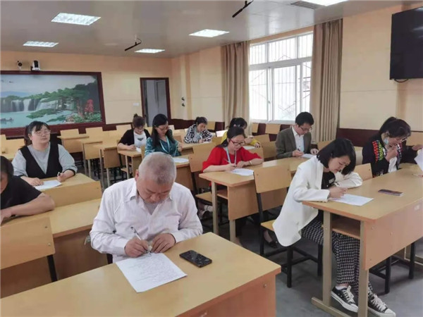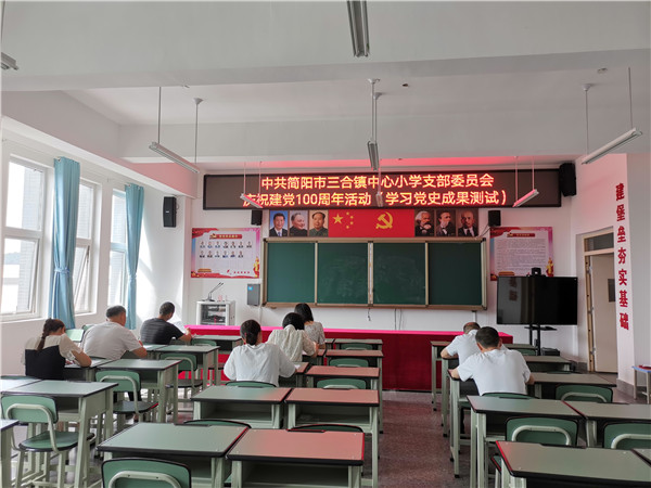 此次检测学习资料已于6月1日下发给全体党员,试题内容包括党章知识、党史知识、中国近代史知识、党的十九大精神等,题型有填空题、选择题、判断题、连线题和简答题,党史知识涉及广泛,检测题型丰富多样。考场如战场,笔下见真章,中共成都市双流区东升小学总支部委员会的检测分两个支部进行,由支部书记主持。在40分钟检测时间里,各位党员像高考学生考试一样认真答题,党员活动室里只听见沙沙的书写声。随着支部书记“检测结束”的口令声,党员们按序交上了自己的答卷。成都市第三区域教育联盟“5G学校发展共同体”其余学校也根据东升小学制定的活动方案,结合学校实际情况扎实开展。