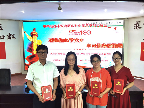 为热烈庆祝中国共产党成立100周年,高标准高质量开展党史学习教育,6月22日,中共成都市双流区东升小学总支部委员会联合成都市第三区域教育联盟“5G学校发展共同体”其他四所学校共同开展主题为“不忘初心学党史 牢记使命强信念”党史学习成果检测活动。