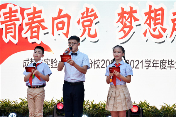 6月25日晚,实小明道分校在美丽的明道校园举行了主题为“青春向党、梦想起航”的2021届毕业典礼。学校全体老师,毕业班全体师生、家长参加了此次活动。