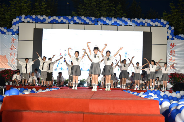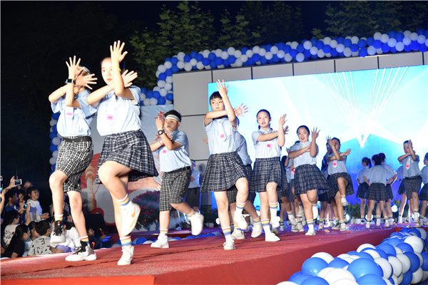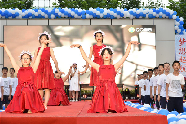 精彩的节目表演再次将典礼推向了高潮,同学们伴随着动感的旋律,用轻盈的舞姿和动听的歌声尽情地展示着他们的青春活力:六年级二班的同学们带来的是动感十足的歌舞串烧《奔跑》和《我的未来式》;六年级三班的同学们带来歌舞表演《我乘风飞过来》;六年级五班的小小少年们随着《少年》欢快的旋律舞动;六年级六班的同学们用《我们的时光》诠释毕业的情愫;六年级七班的同学们带来舞蹈串烧《你最最最重要》《天天向上》;六年级四班的歌舞表演《放心去飞》特别感谢了父母的付出。