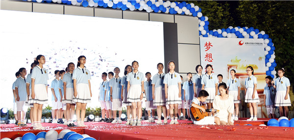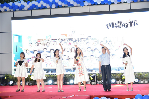 在《我们都一样》的歌声中,六年级全体老师走上舞台,唱出了对孩子们深深的祝愿。之后,孩子们为老师们献上鲜花,表达了对老师深切的感激之情。