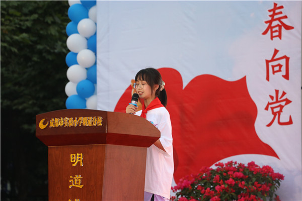 有太多太多美好的记忆还没来得及向母校一一倾诉就要离别,大队长杨芮涵代表毕业生们表达了对母校深深的爱意!祝愿学校蒸蒸日上,祝愿老师身体健康。