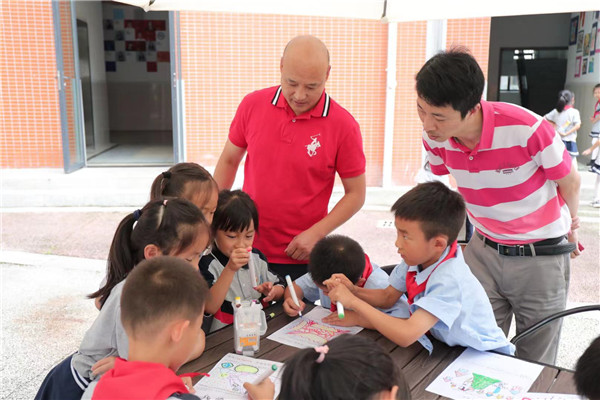 从《春江花月夜》到《茉莉花》,再到《致爱丽丝》,每一天的音乐在唤醒孩子的耳朵的同时,也让学校的每一面墙壁都挂满了五彩斑斓的画。学校每月定期举办主题画展,画作从校门口一路排列,让心情铺陈成风景,也让审美教育和心理教育的影子悄悄生根发芽。