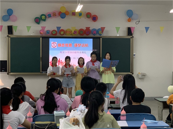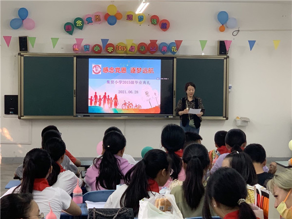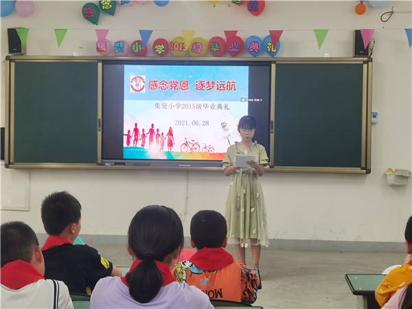 在阳光灿烂的6月,崇州市集贤小学2015级的孩子们迎来了他们的毕业季。6月28日早上,集贤小学举行了2015级“感念党恩 逐梦远航”毕业典礼。