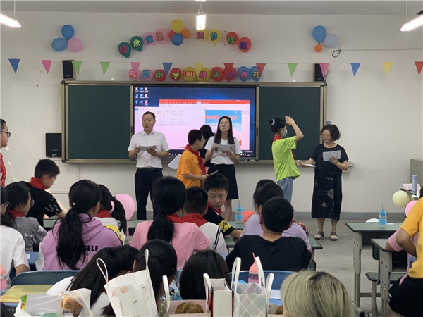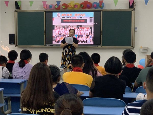 依依惜别,难忘教诲。为了感谢老师们的悉心教导和无微不至的关怀,孩子们向老师献上鲜花,姚雅诗代表同学发言。她回忆了六年来老师们无微不至的关心和呕心沥血的教导,向亲爱的老师们表达深深的谢意和诚挚的祝福。其他同学也纷纷展示自己的才艺,一声声、一句句,都是孩子们对老师、对学校的感恩和祝福。
