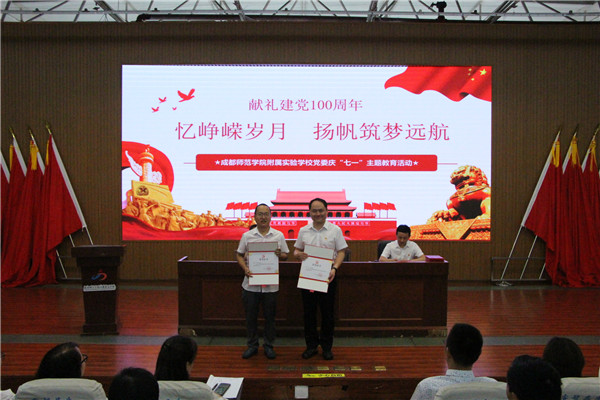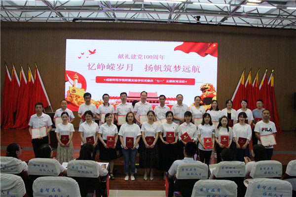为庆祝建党100周年,6月26日上午,成都师范学院附属实验学校(以下简称:成师附校)党委开展了“忆峥嵘岁月·扬帆筑梦远航”主题党日活动。会议由党委委员、教师发展中心主任瞿成主持,全体党员参加。