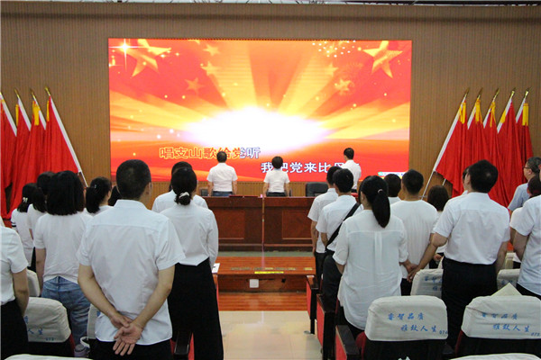 全体党员齐唱红歌《唱支山歌给党听》,并观看视频《党的百年华诞》。