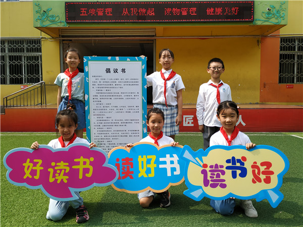 最后,学生代表们向全校师生发出倡议,从以下五个方面着手:一、开卷有益——爱读书;二、读万卷书——多读书;三、学海无涯——勤读书;四、良师益友——读好书;五、学以致用——善读书。养成良好的阅读习惯。