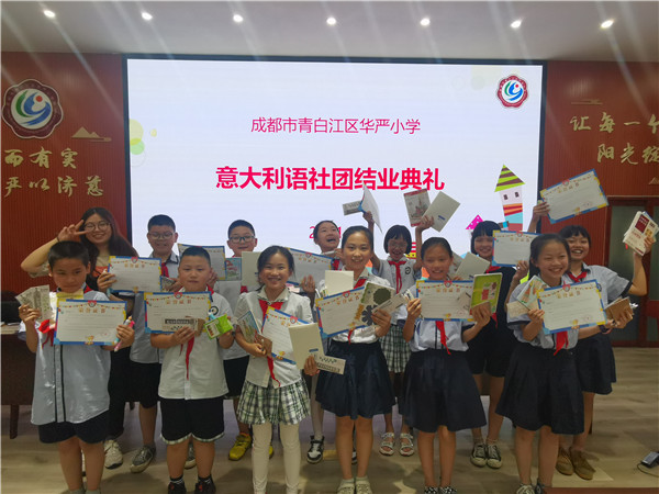 成都市青白江区华严小学意大利语社团的孩子们经过一年的第二课堂学习,完成了教育国际化校本教材《你好,意大利》课程的全部内容,顺利结业。