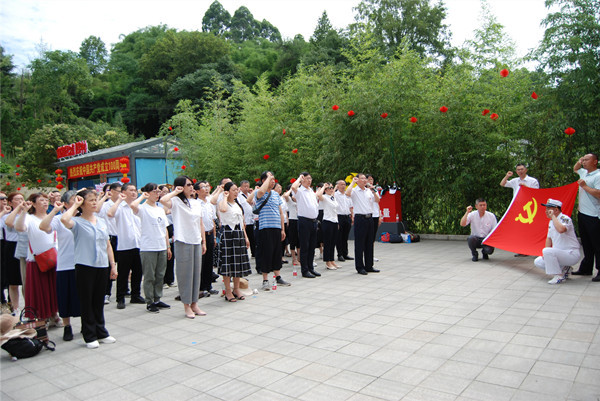 满怀对革命先烈的崇敬之情,以及身为共产党员的自豪感,全体党员在党旗下重温了入党誓词,坚定有力的宣誓声在广场回荡。