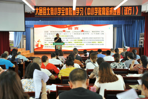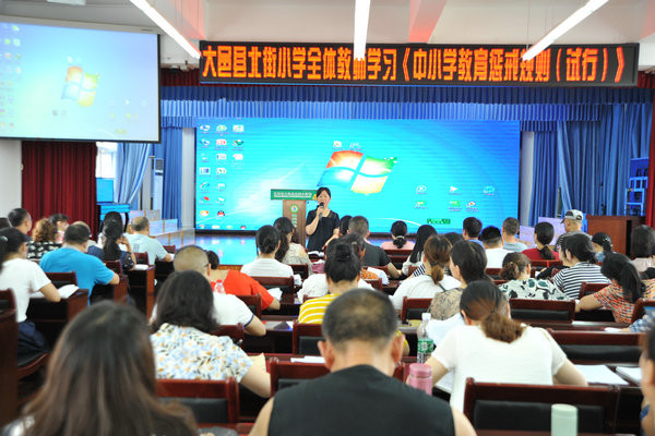 为全面落实党的教育方针和立德树人根本任务,保障和规范学校、教师依法履行教育教学和管理职责,帮助教师掌握教育惩戒的具体要领,提高教育惩戒的执行能力,保护学生合法权益,促进学生健康成长、全面发展,2021年7月5日,大邑县北街小学在学校学术厅开展了2020-2021学年度下期《中小学教育惩戒规则(试行)》培训会。全体教师参加了此次培训。为全面落实党的教育方针和立德树人根本任务,保障和规范学校、教师依法履行教育教学和管理职责,帮助教师掌握教育惩戒的具体要领,提高教育惩戒的执行能力,保护学生合法权益,促进学生健康成长、全面发展,2021年7月5日,大邑县北街小学在学校学术厅开展了2020-2021学年度下期《中小学教育惩戒规则(试行)》培训会。全体教师参加了此次培训。