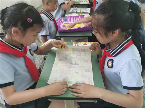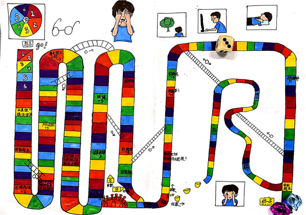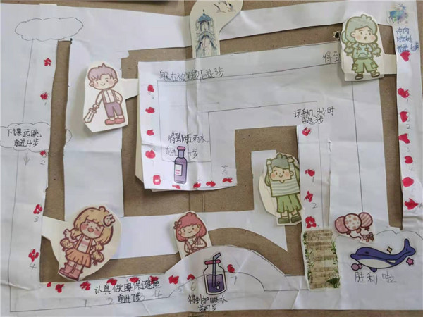 同学们发布的学习成果形式多样。有的同学展示的是自己亲手制作的护眼美味菜,有的同学展示的是自己设计的花式宣传单,更多的同学展示的是五彩斑斓、图案创意各不相同的防近视知识游戏棋。