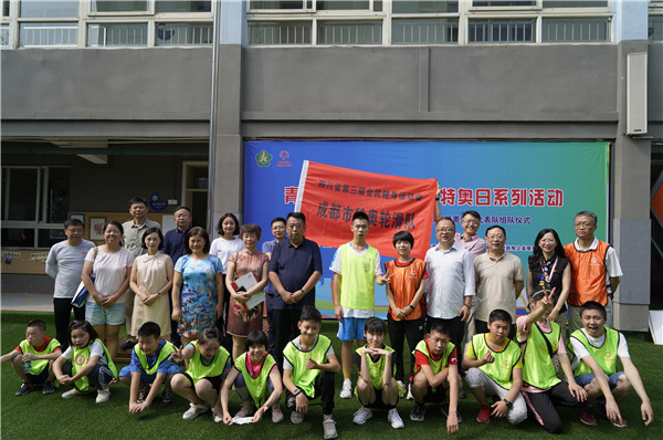调研组还参加了在青羊特校苏坡校区举行的青羊区第十五次全国特奥日系列活动启动仪式。在青羊区国际特奥东亚区运动员领袖,国际特奥东亚区运动员领袖,青羊特奥运动员、教练员,教师、家长志愿者的共同见证下,区人大常委会副主任孙健和区残联理事长陈船向即将代表成都市出征四川省第三届全民健身运动会的成都市特奥轮滑代表队授旗,鼓励特奥运动员们勇敢尝试、争取胜利,并预祝他们取得好成绩。