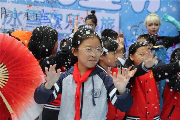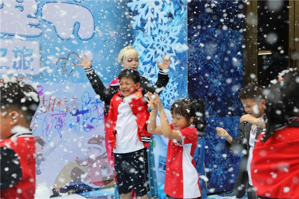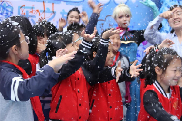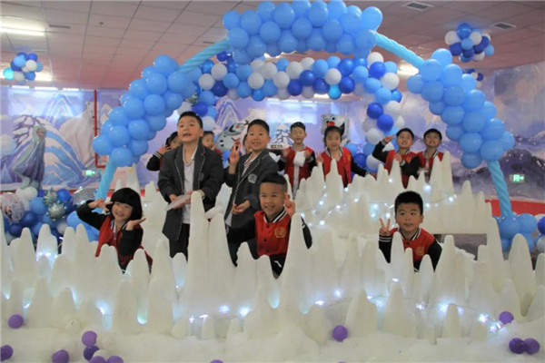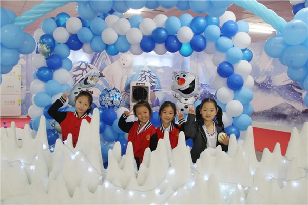 冰雪世界里,梦幻的蓝色格调装饰、精心打造的城堡、飘摇而下的飞雪、细心装扮的雪人,顿时燃起了孩子们的兴奋点,纷纷拍照合影。