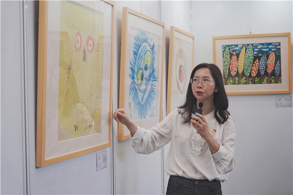 介绍完毕后,卞蓉校长向领导们赠送了用特殊孩子绘画作品制作的笔记本、鼠标垫、明信片等。
