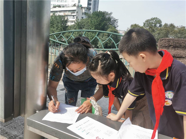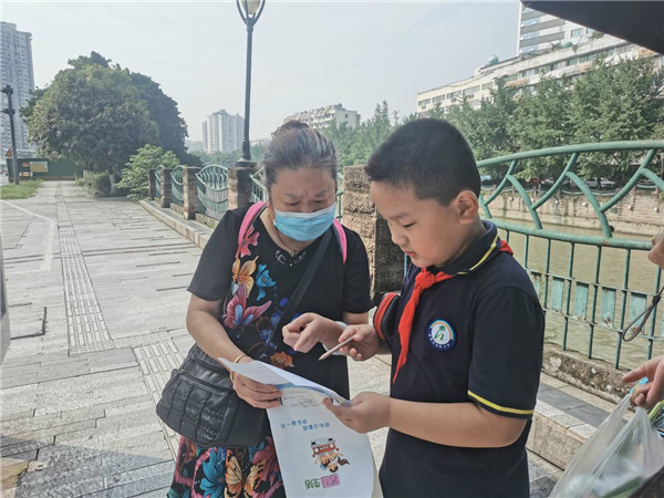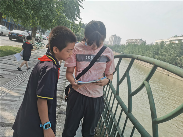 于老师给孩子们讲解了府南河的治理,以及淡水资源的珍贵,对孩子们进行以“河长制”为主题的宣讲,使孩子们了解“河长制”以及身为护河小使者的责任,同学们也通过实地观察,看到了府南河的变化。在老师的带领下,孩子们对路人进行了护河知识问卷调查。