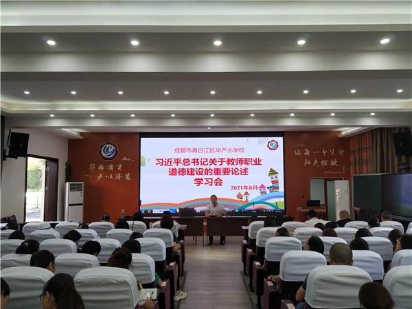 为持续深入推进学校“清风校园”师德师风专项整治活动,8月23日上午,成都市青白江区华严小学开展2021年暑期师德学习活动。