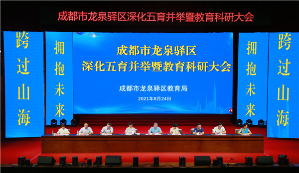 为全面贯彻落实为党育人、为国育才目标,进一步深化五育并举、促进科研兴教,落实中央“双减”要求,2021年8月24日,龙泉驿区组织召开深化五育并举暨教育科研大会。中国教育学会杨银付秘书长在线出席会议,中国教育学会评价办主任秦建平,成都市委教育工委委员、市教育局党组成员、市人民政府总督学陈蕾,龙泉驿区区委常委、宣传部部长彭钚铀、龙泉驿区人民政府副区长刘埊出席,龙泉驿区教育局班子成员,区教科院、区社教中心、区教育局机关科室负责人和全区公民办中小校长、副校长、教导主任、德育主任、教科室主任,幼儿园园长代表参加会议。会议由区教育局党组成员、副局长张英武主持。