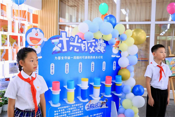 接着,孩子们把写给六年后自己的短信装进了小小的时间胶囊,再把它投进大大的班级胶囊,静候六年后再亲手开启它。一份期待,一份憧憬都被装进了这小小的胶囊里,期待再次打开的时候,大朋友们将会是多么的欣喜和雀跃。