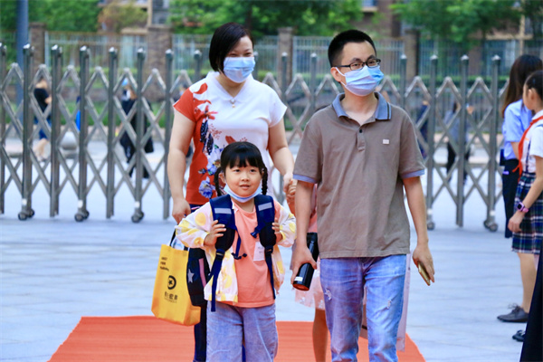 红毯的另一边,和蔼可亲的老师们早已准备就绪,等待每一位萌娃的到来。崭新的教室、整齐的书本、萌萌的恐龙、精美的《入学宝典》……愉快的小学学习生活即将开始。