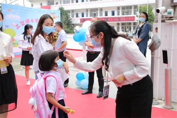 伴着柔和的秋风,成都东部新区三岔湖小学校又迎来了一张张可爱而充满朝气的面孔。8月30日是学校一年级新生报到的日子,为了迎接新生的到来,全体行政和教师不到七点就早早来到校园,为孩子们的安全出入保驾护航。