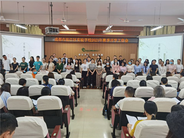 为更有序地推进学校开学各方面工作,2021年8月30日上午,成都中医药大学附属小学(以下简称:中医大附小)全体教师齐聚卓正厅参加2021年秋季开学工作会。