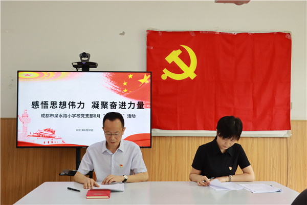 8月30日上午,成都市泉水路小学校党支部开展了“感悟思想伟力 凝聚奋进力量”主题党日活动,学校全体党员教师和入党积极分子参加了活动。