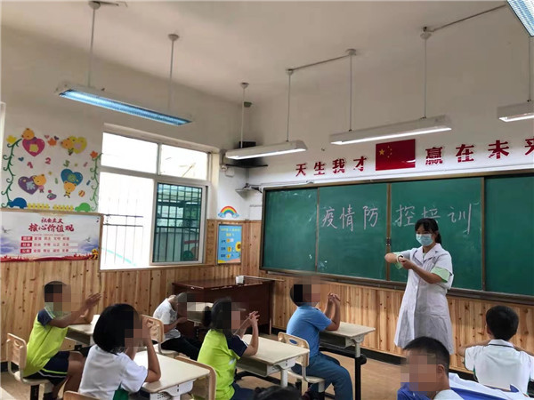 彭州特校分管行政向健康副校长介绍了该校开学前的疫情防控措施、疫情防控物资、开学疫情应急演练工作等情况。之后,健康副校长胡佳到班为学生作疫情防控和秋季传染病防治培训,教育学生要勤洗手、戴口罩、常通风、接种疫苗,并详细讲解了七步洗手法的要求。