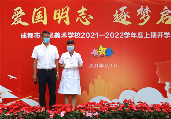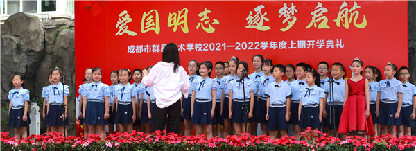 9月1日上午,成都市群星美术学校全校师生齐聚操场,举行主题为“爱国明志 逐梦启航”的2021-2022学年度上期开学典礼。