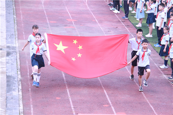 伴随着雄壮的国歌声,鲜艳的五星红旗又一次高高飘扬在了校园上空。校长对新同学、新教师的加入表示热烈的欢迎,对同学们的学习、成长也提出了新学期的新希望。紧接着,小小学长们带来了诗歌朗诵《夸夸咱的党》、小品《疫情下的成都速度》《致奥运健儿》、朗诵《少年中国说》《我爱你中国》,开学典礼也逐渐接近了尾声。