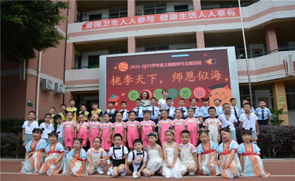 2021年9月6日,成华实验小学二年级四班承办了以“桃李天下,师恩似海”为主题的集体朝会。