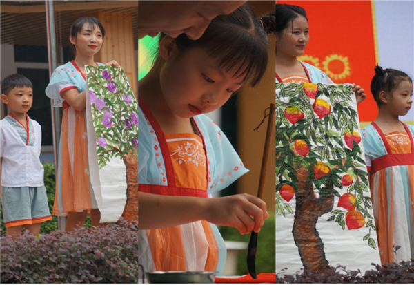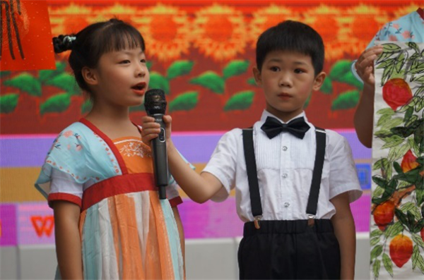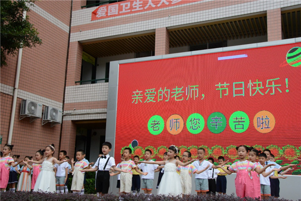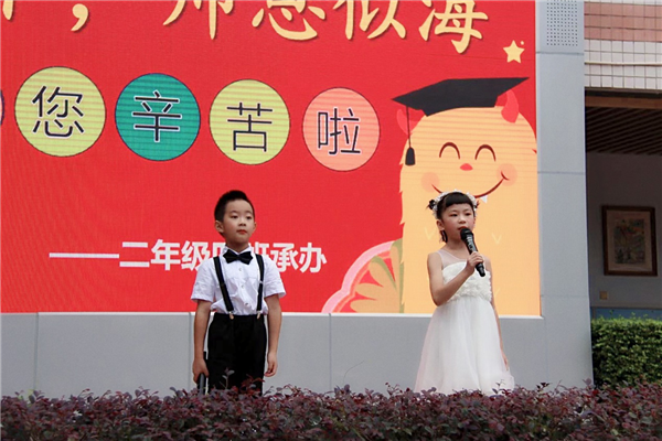 随后,二年级四班的同学们表演了《舞蹈串烧》和《三字经》,还有多才多艺的同学用写毛笔字和画画的形式,表达对老师的爱与感谢。