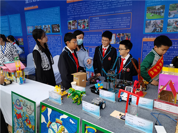 在活动即将结束之际,孩子们转换角色,成为观展人,认真参观其它学校的展品,更是与其他学校的孩子们热情交流,碰撞思维的火花。