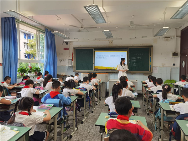 教研员陈涛、黎红,兼职教研员叶敏则走进班级,就“双减”下学校语文教学教研工作开展进行了专项指导。学校青年教师黄滟媚、周佩、段钰珉、黄靓、王圣君、张莎莎老师分别呈现了具有各年级教学特色的公开课,学校全体语文教师参与听课和课后分组研讨。