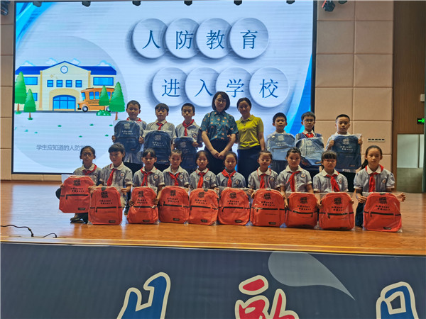 专题讲座结束后,杨副科长还为同学们赠送了“强国有我”的书包与笔袋以及人民防空的知识手册,让孩子们通过“小手拉大手”活动,回家讲给爸爸妈妈、爷爷奶奶听,让全民参与进来。