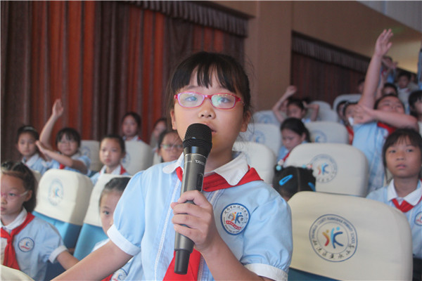 杨副科长通过视频播放、主题宣讲、与孩子们一问一答等多种方式来普及人防的基础性知识和技能,增强学生的国防意识和爱国主义情怀。