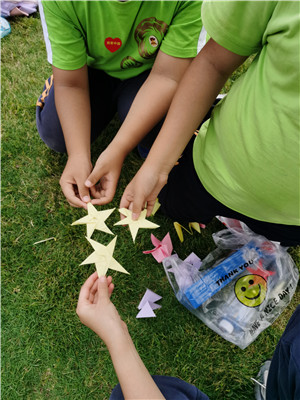 为了牢记五星红旗的由来,深刻体会胜利来之不易,珍惜现在和平幸福的生活,孩子们开展了学折五角星活动。