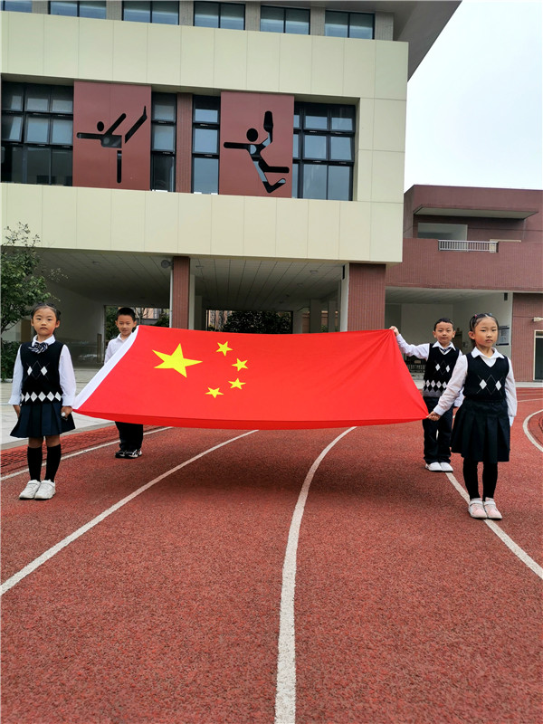 小小的身体托举着大大的国旗,孩子们严肃而庄重地将国旗升起,展示重阳风貌。