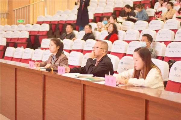 专家评委听评教材解读的同时,分别从如何落实“双减”政策、如何与其他学科相融合提高作业的质量、如何细化学生自评等方面进行提问、探讨。