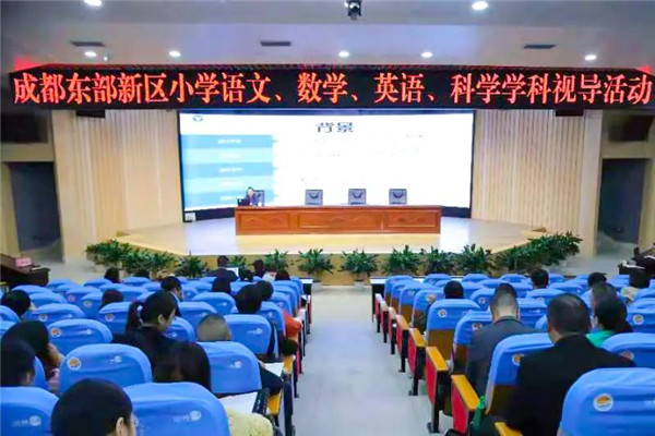 为贯彻落实“双减”政策,切实减轻学生课业负担,成都市教育科学研究院于10月13日上午,在东部新区三岔湖小学校环湖蓝色大厅如期举行了小学语文、数学、英语、科学学科视导活动。成都市教科院的四位专家亲临现场进行指导,他们分别是:小学语文教研员罗良建老师、小学数学教研员张碧荣老师、小学英语教研员樊波老师、小学科学教研员常利梅老师。来自东部新区教育处的谢小玲、姚娟两位老师,以及全区各督导组教研员、学科中心组成员、各校教学分管校长和教研组长等200余人参加了本次活动。