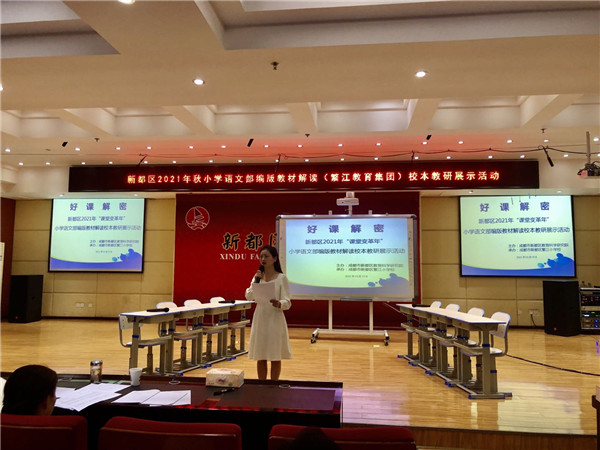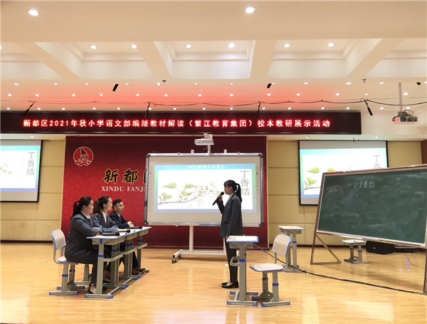 为准确把握部编版小学语文教材编写意图,帮助教师有效整合单元教学,深入推进课堂教学研讨。10月19日上午,新都区繁江教育集团2021年秋小学语文部编版教材解读校本教研展示活动在新都区繁江小学成功举行。参加此次活动的有新都区教科院教研员赖立莉老师、王长银老师,以及全区各学校评委及语文老师。