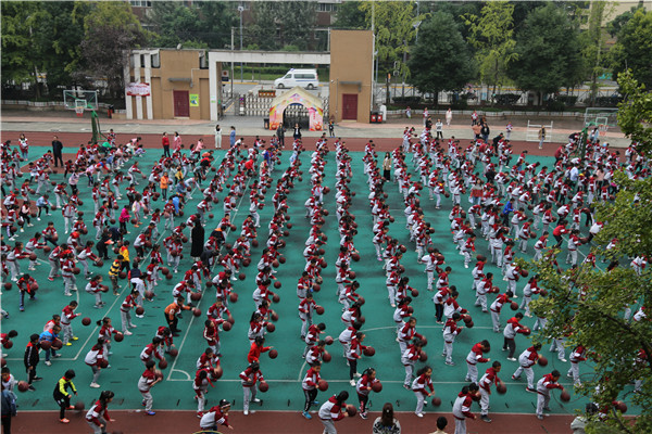 学校正在进行《“阳光篮球”课程群的开发与实施》区级课题研究,金泉小学围绕篮球项目,组织开展了形式多样、内容丰富的活动。自创学生篮球操及裁判员手势操,既丰富了每日的大课间,又积极地普及篮球基础知识和技能,让篮球体锻成为了学校体锻的一道亮丽风景线。