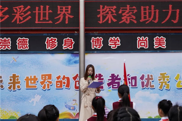 10月18日升旗仪式上,心理老师代表学校德育处发出倡议,她希望大家用心参与本周的活动,寻找到自己的热爱,体验到世界的美好。