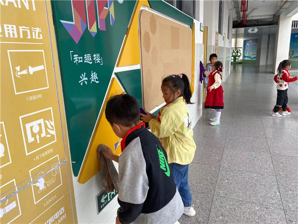 中午就餐结束后,师生们在领取到劳动工具后直奔各自负责的劳动区,积极投入到清洁校园环境的活动中。在教室内,同学们在老师的带领下,以组为单位,分工合作,各司其职,很细心地打扫卫生。同学们拿起抹布,用自己稚嫩的小手把教室的墙壁、窗台、瓷砖擦得干干净净、光亮照人,连一个死角都不放过。老师们也身体力行,挽起衣袖,把办公室来了一次彻底清扫。在大家的努力下,教室和办公室内外焕然一新。
